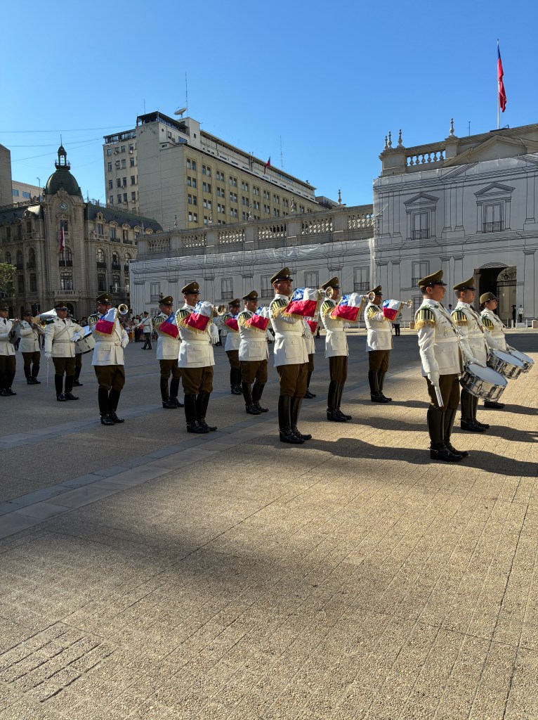 I love watching a guard change. One of the coolest was a tiny guard change in Argentina for soldiers who guard San Martin’s sword. Then you have the iconic guard changes of England. But Santiago takes the cake for the most epic guard change I’ve experienced. They had at least 40 people in their band, two horses, plenty of soldiers marching, and they even includes female soldiers!