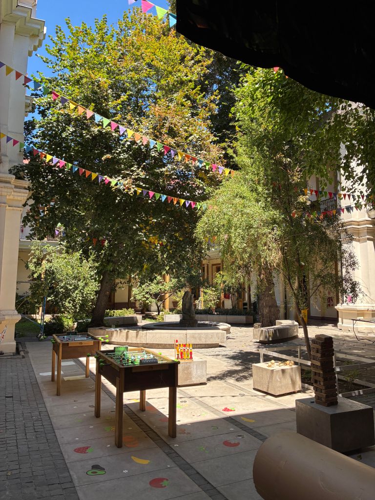 Museo de la Educación Gabriela Mistral is just steps away from the human rights museum and is small but free palette cleanse. It has games in the courtyard that you are welcome to play (including hopscotch!) and an adorable cat that is living its best life interacting with all of the items around the grounds.